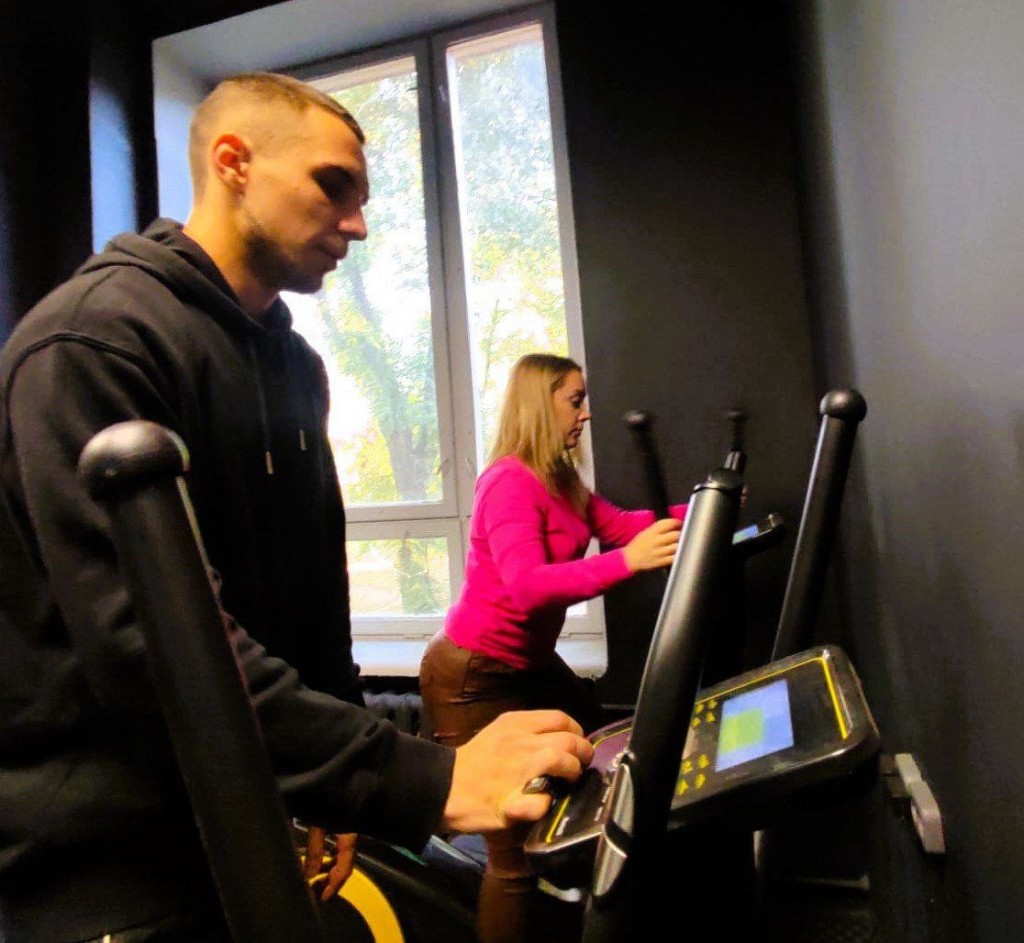 «Часто буває, що ветеран або ветеранка приїжджає на масаж чи консультацію, а подружжя та діти в цей час займаються в спортзалі. Це живий простір, де завжди відчувається рух і життя», — говорить Дмитро Білов.