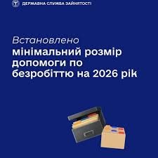 Допомоги по безробіттю, мінімальний розмір якої 1 січня 2026 року становить 3900 грн.