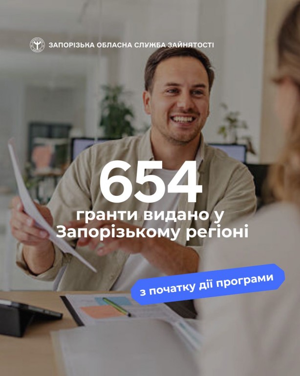 654 гранти видано у Запорізькому регіоні з початку дії програми