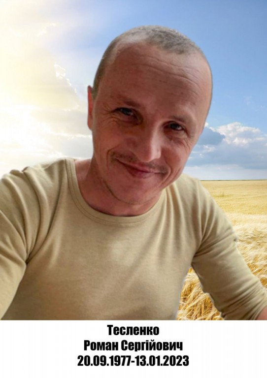 ГЕРОЙ громади -Тесленко Роман Сергійович (20.09.1977-13.01.2023) , йому навічно залишиться 45 років... він навіки буде в строю ......