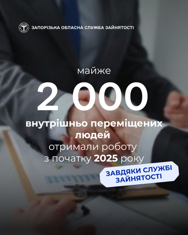 Попри виклики, з якими стикається Запорізький регіон, обласна служба зайнятості продовжує щоденно підтримувати внутрішньо переміщених людей у пошуку нових можливостей. З початку 2025 року майже 2 тисячі ВПО вже знайшли роботу завдяки супроводу та програмам служби — і ця цифра зростає щодня.